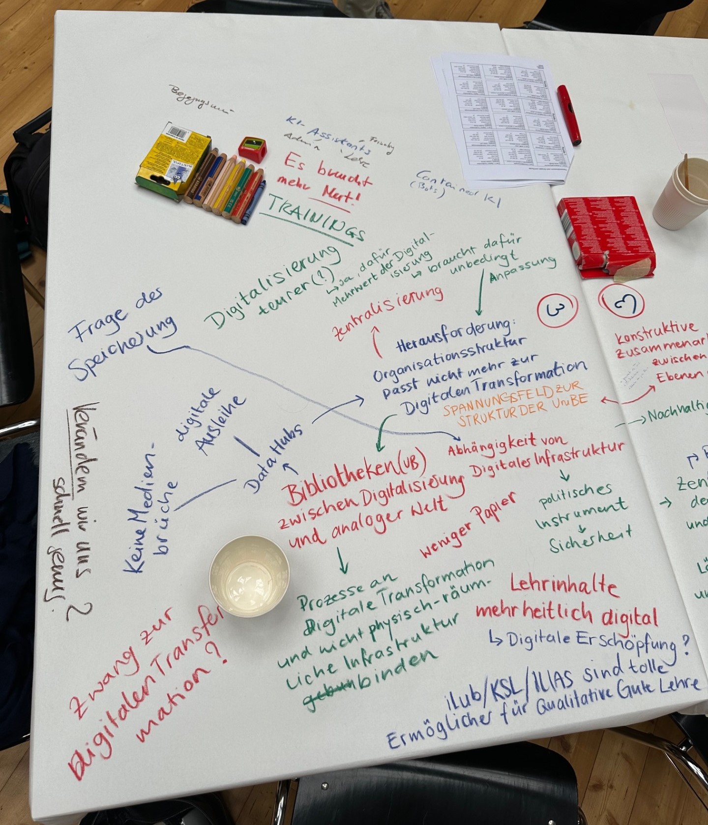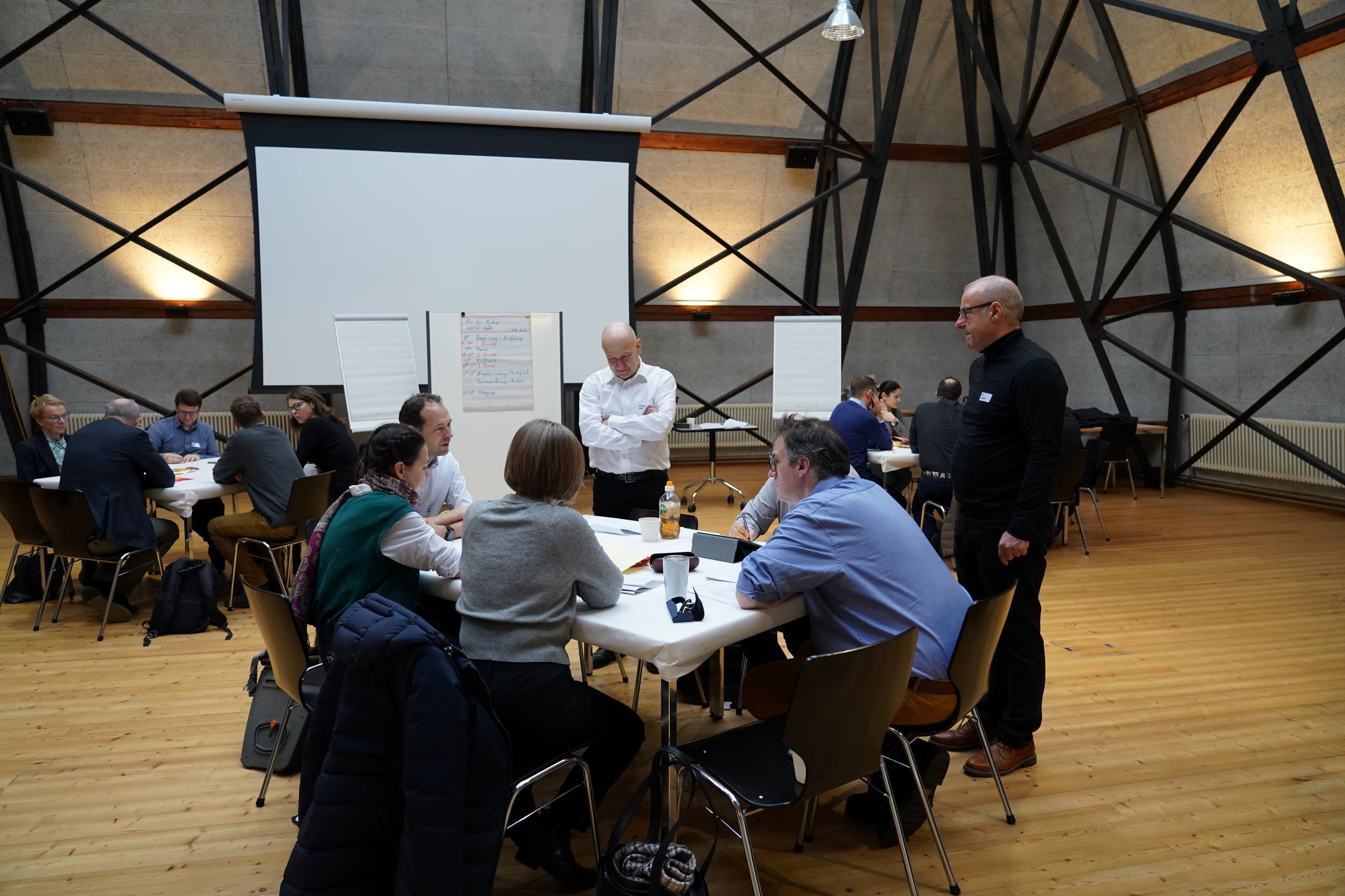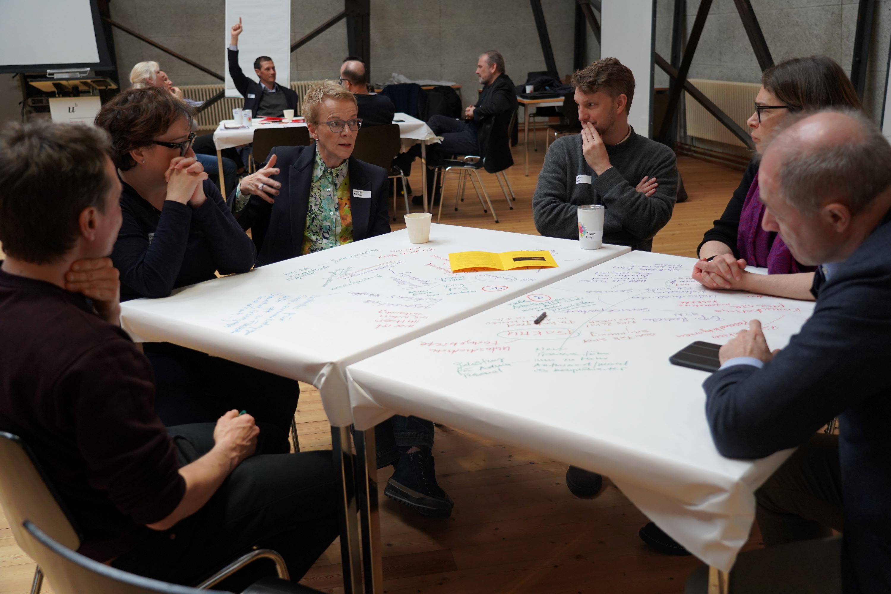 Die Diskussionen fanden in einer konstruktiven und offenen Atmosphäre statt. Die Teilnehmenden hoben hervor, dass das Format World Café lebhafte Gespräche ermöglichte und gleichzeitig Raum für unterschiedliche Sichtweisen bot. Nicht zuletzt machten die Gespräche zu neuen Arbeitsplatzkonzepten deutlich, dass Veränderungen weit über räumliche Fragen hinausgehen. Kommunikation und Einbezug der Betroffenen wurden dabei als wesentliche Erfolgsfaktoren genannt.